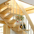 Halbwendungs-Treppe mit Handlauf und Untergurt, Eschenholz